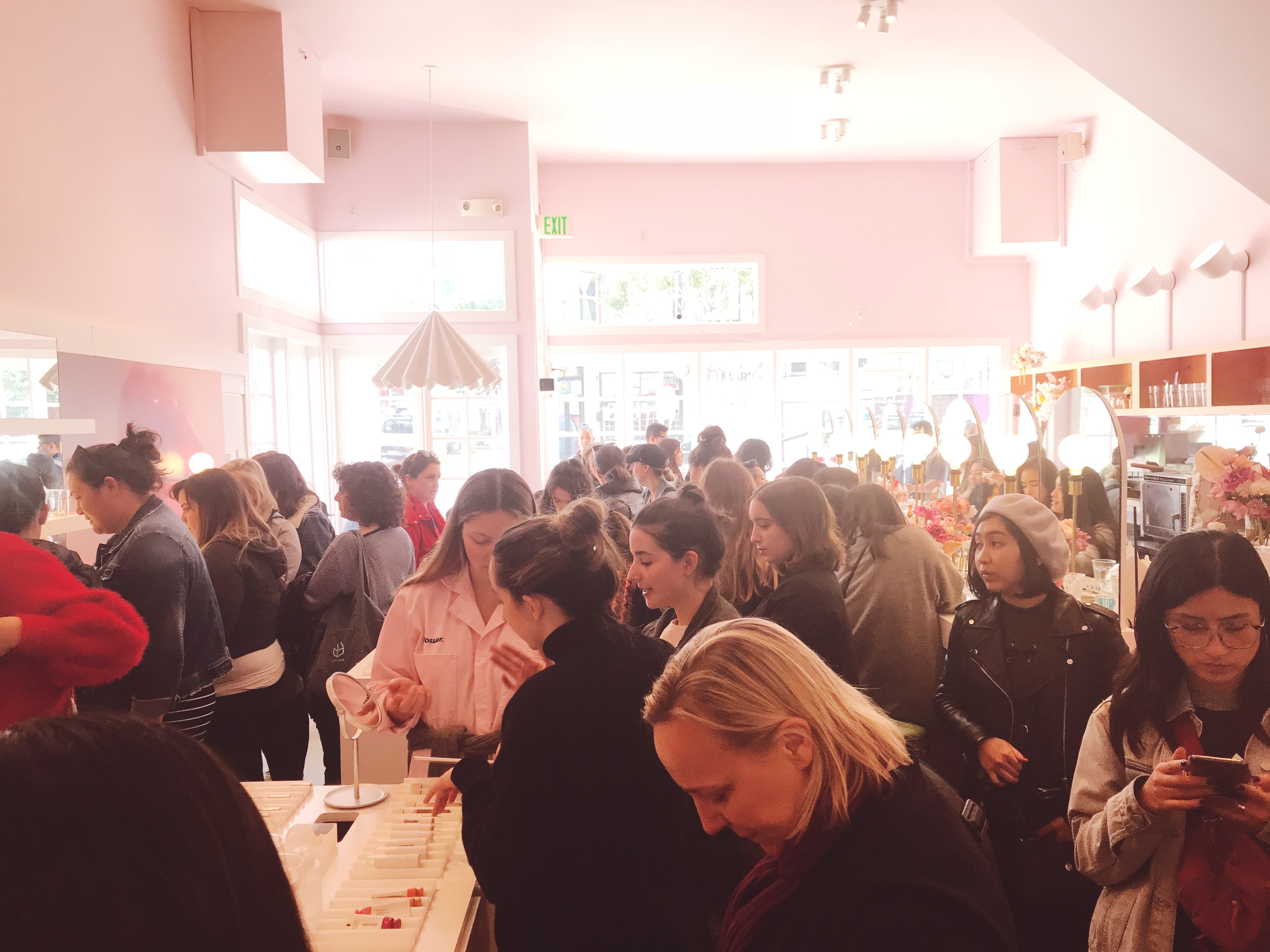 Glossier es una marca de maquillaje y skincare, que se ha caracterizado, no sólo por la calidad de sus productos, sino también por el lindo aspecto que éstos tienen. Por lo tanto, era de esperarse que su primera tienda temporal en la costa oeste fuera ad hoc con la imágen de todos sus productos.