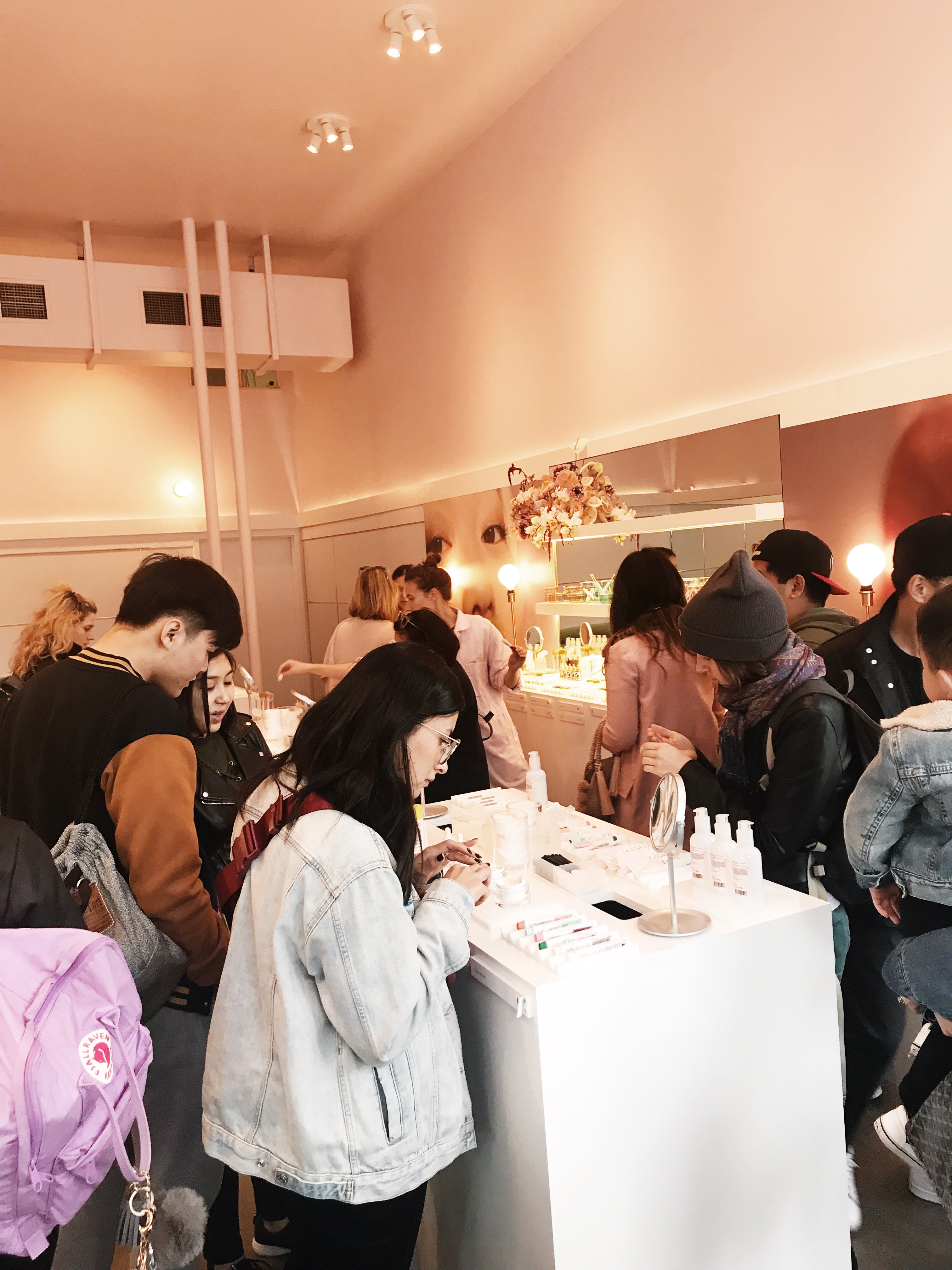 En el centro del salón y en las paredes se exponen más de los productos, tanto de skincare como las nuevas fragancias de la marca. Y sí, todo se puede probar, tanto en swatches, como en el rostro y siempre recibes ayuda y consejos de las trabajadoras que, por cierto, son súper amables.